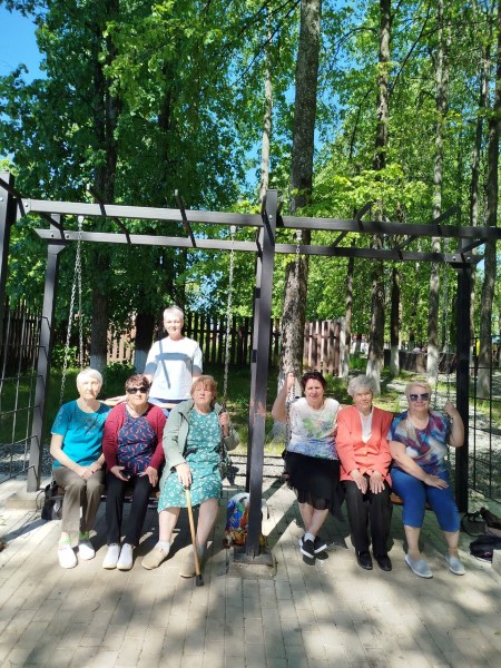 В отделении дневного пребывания ГБУ "КЦСОН Краснобаковского муниципального округа" инструктор по ЛФК Сенникова Е.Н. провела с обслуживаемыми прогулку и зарядку на свежем воздухе.