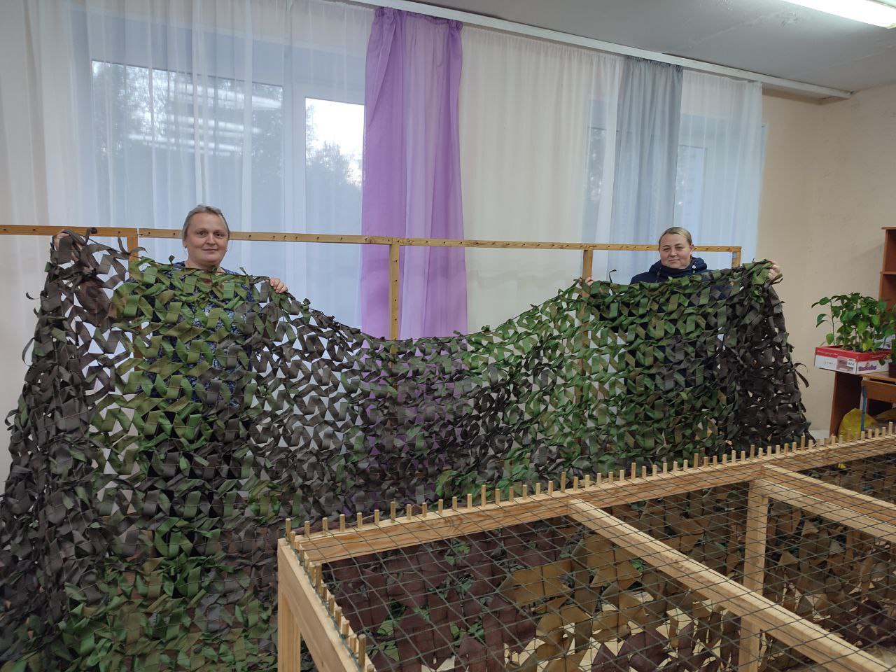 В с. Зубилиха социальные работники ГБУ "КЦСОН Краснобаковского муниципального округа" активно принимают участие в изготовлении маскировочных сетей для СВО