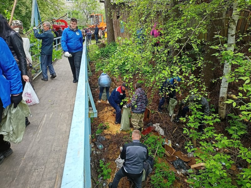 Работники организаций и предприятий Краснобаковского округа, "Волонтеры Победы" из г. Нижний Новгород совместными усилиями очистили территорию оврага от бытового мусора и старых веток.
