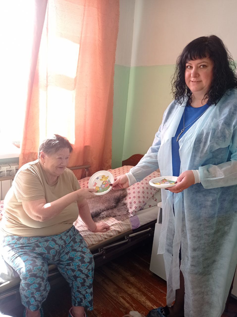 Наши обслуживаемые изготовили сувениры – Тарелка в технике декупаж, для пациентов отделения сестринского ухода Краснобаковской ЦРБ. А накануне праздника социальные работники отделения срочной службы вручили их , пожелав крепкого здоровья, бодрости духа и благополучия. Подарки, сделанные своими руками, обладают особой ценностью. Они дарят праздник не только тому, кто их получает, но и кто их создает.