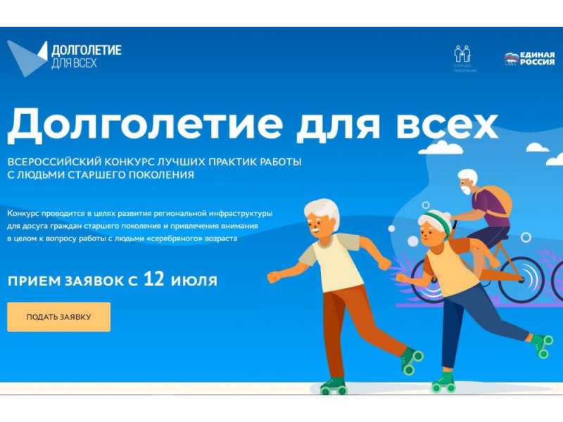 Всероссийская политическая партия "Единая Россия" запускает всероссийский конкурс лучших практик работы со старшим поколением "Долголетие для всех", основной целью которого является привлечение внимания к вопросу работы с представителями данной целевой аудитории.