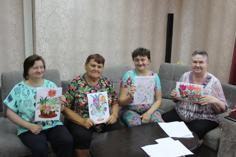 В отделении дневного пребывания для отдыхающих прошло занятие по рисованию. На этот раз раскрашивали акварелью картины раскраски.