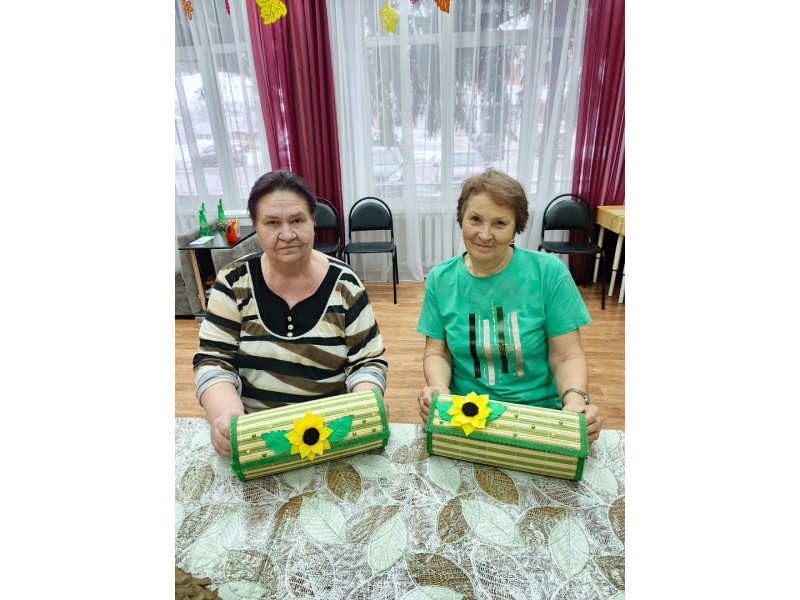 Отдыхающие отделения дневного пребывания сделали своими руками из бамбуковой салфетки оригинальную шкатулку в стиле декоративно - прикладного искусств.