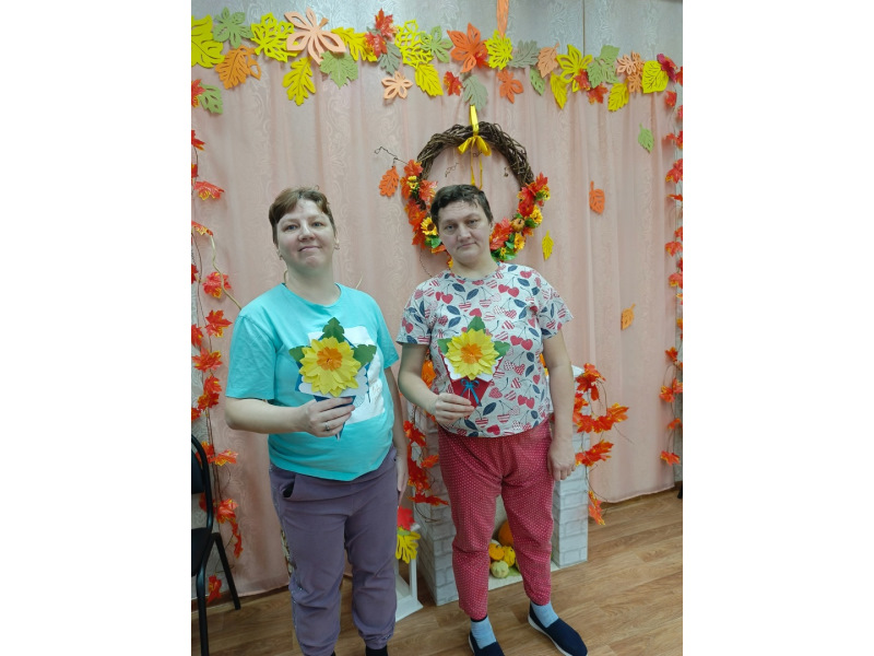 В отделении дневного пребывания молодые инвалиды с ментальными особенностями развития сделали своими руками праздничную открытку. Цветы получились яркие и оригинальные.