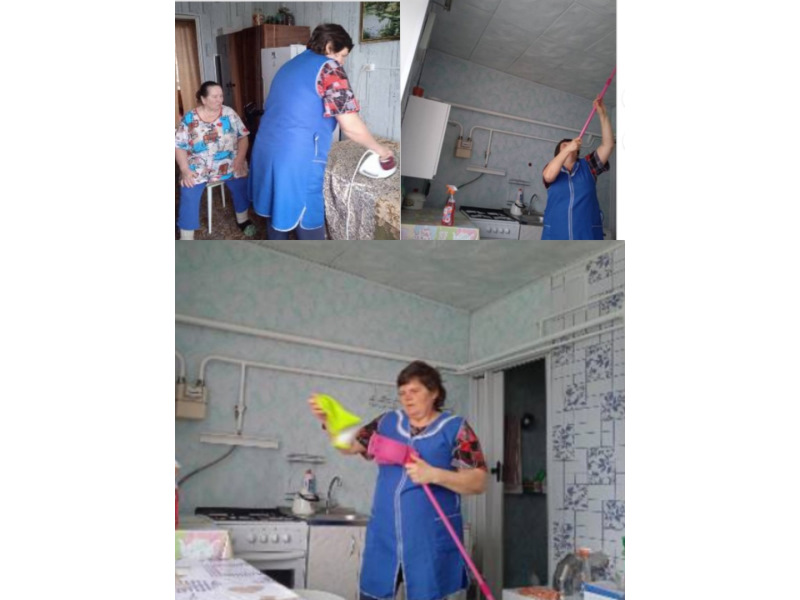 Социальный работник с. Мадаево Карпова Надежда Петровна проводит весеннюю генеральную уборку у обслуживаемой Новиковой Н. Н.