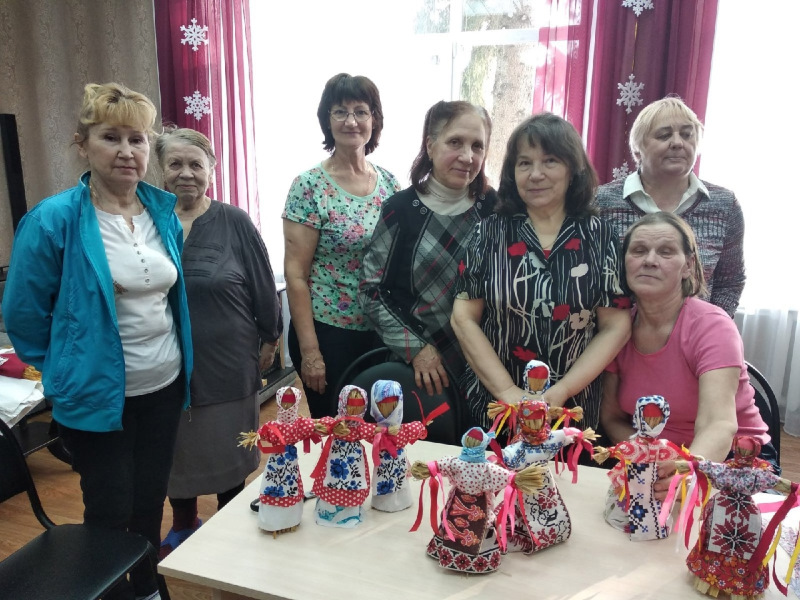 Отдыхающие отделения дневного пребывания на кружке «Волшебный клубочек» своими руками изготовили оберег - Масленицу из лыка и лоскутков ткани.