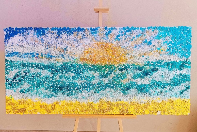В отделении дневного пребывания в течение смены проходили увлекательные творческие занятия, на которых наши отдыхающие создавали панно из пуговиц под названием "Солнечный берег".