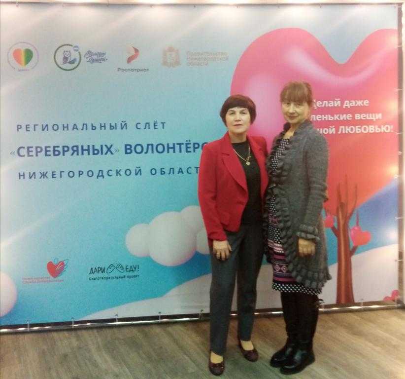 с 21 по 22 ноября состоялся первый Региональный слёт «серебряных» волонтёров Нижегородской области. В мероприятии приняли участие более 140 человек из 50 районов. Наш район представили специалисты Комплексного центра социального обслуживания населения  Галина Сигай и Наталья Гостяева.
