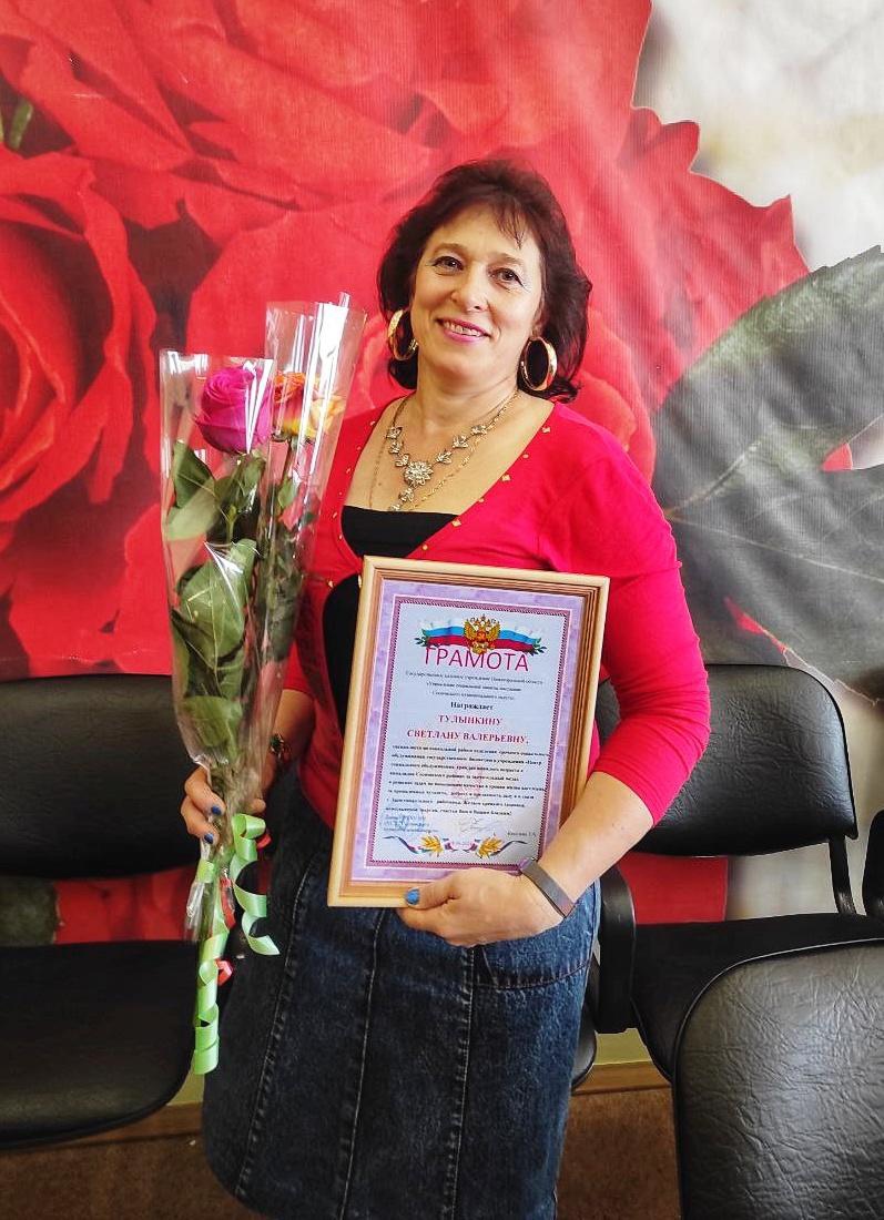 Светлана Валерьевна Тулынкина работает в нашем Центре более двадцати лет. Начинала свою работу с социального работника, некоторое время работала заведующей социально-бытовым отделением, а сейчас трудится специалистом срочного социального обслуживания при Западном АТО.
