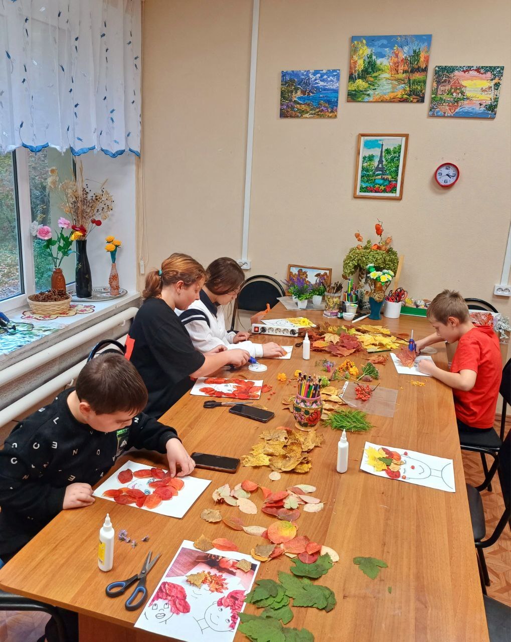 На занятии дети познакомились с профессией парикмахер и представив себя в этой роли, выполнили аппликации из сухих осенних листьев в виде креативных причёсок.
